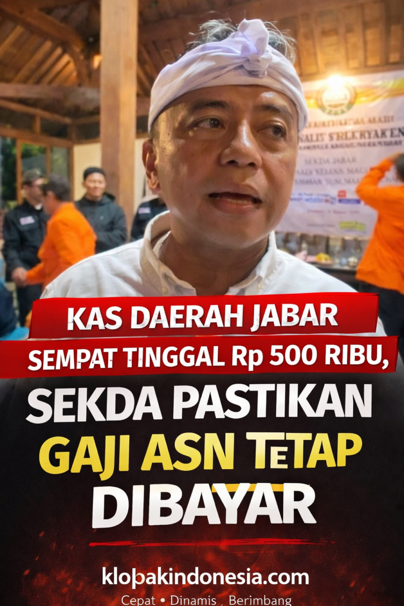 Bandung, Klopakindonesia.com — Pemerintah Provinsi Jawa Barat memastikan gaji Aparatur Sipil Negara (ASN) tetap dibayarkan tepat waktu, meski posisi Rekening Kas Umum Daerah (RKUD) sempat tersisa sekitar Rp 500.000 pada akhir Desember 2025.
