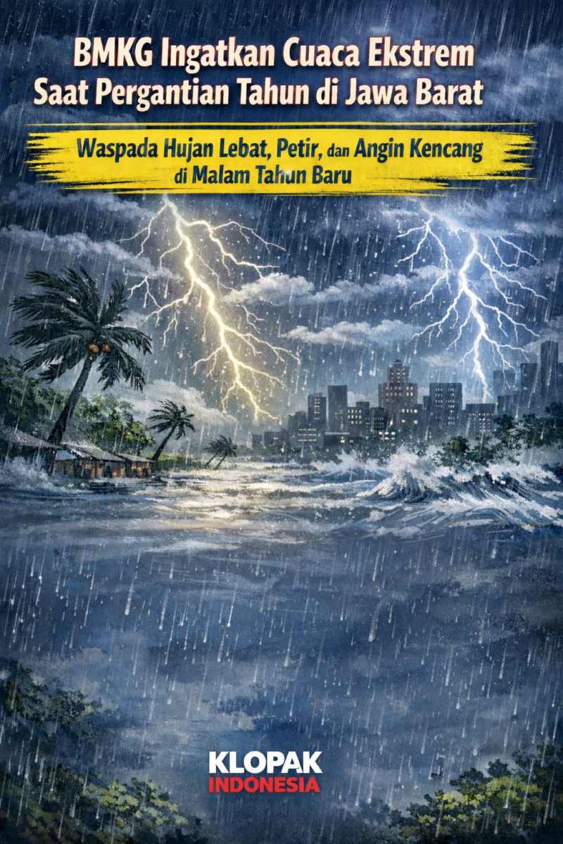 KlopakIndonesia.com – Badan Meteorologi, Klimatologi, dan Geofisika (BMKG) mengeluarkan peringatan dini terkait potensi cuaca ekstrem yang berpeluang terjadi saat perayaan pergantian tahun di wilayah Jawa Barat. Masyarakat diimbau meningkatkan kewaspadaan, terutama saat beraktivitas di luar rumah pada malam tahun baru.