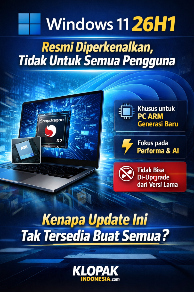 KLOPAKINDONESIA.COM – Microsoft resmi memperkenalkan Windows 11 versi 26H1, sebuah pembaruan sistem operasi yang hadir dengan pendekatan berbeda dari rilis Windows sebelumnya. Tidak seperti update mayor yang biasanya tersedia luas, versi ini justru dirancang khusus dan tidak ditujukan bagi seluruh pengguna Windows 11.