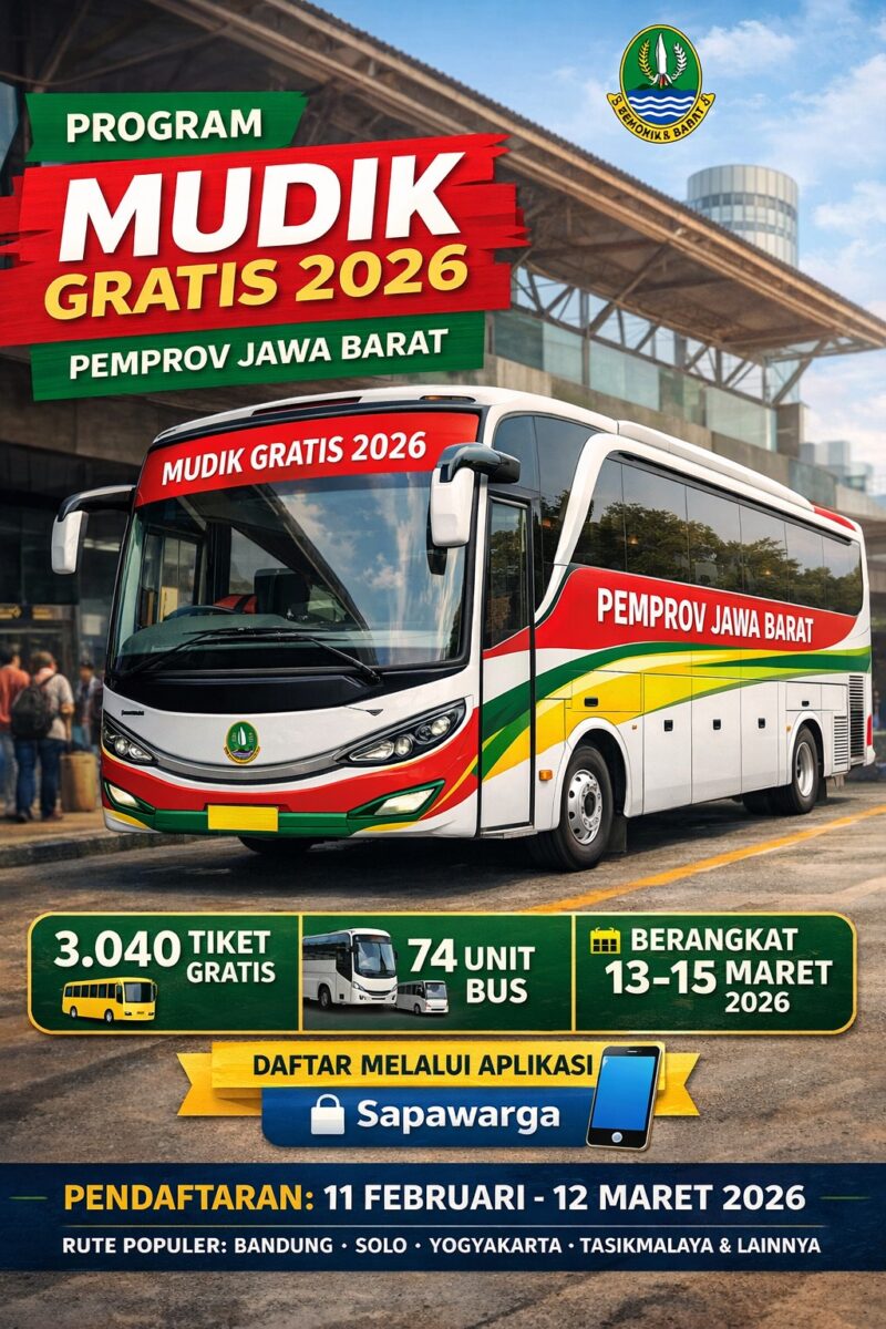 Sebagai bentuk pelayanan publik dan kepedulian sosial menjelang Hari Raya Idulfitri, Pemerintah Provinsi Jawa Barat (Pemprov Jabar) melalui Dinas Perhubungan Jawa Barat kembali menghadirkan Program Mudik Gratis Tahun 2026.