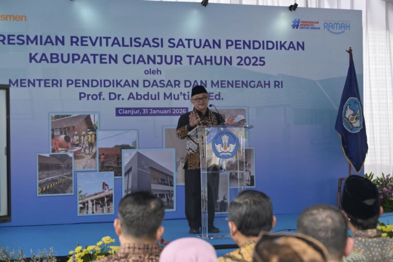 “Membangun gedung tidak sekadar membangun fisiknya, tapi membangun peradaban dengan gedung yang berkualitas,” ujar Mendikdasmen saat meresmikan hasil revitalisasi di SMK Kesehatan Cianjur, Sabtu (31/1).
